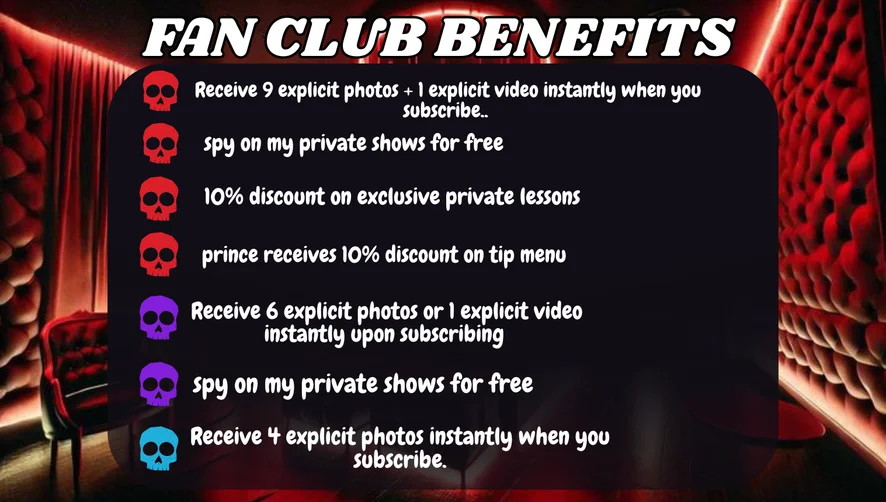 Eroottinen tanssi, Kalu-luokitus, Strippaus, Jalkafetissi, Taivutus, Tupakointi, Hieronta, Masturbointi, Runkkaus, Öljyesitys, Itsensä imeminen, Selkäsauna, Cuckold, Tuhmat puheet, Ejakulaatio, Orgasmi, Hardcore, Nieleminen, Seksilelut, Suuteleminen, CEI, Vilauttelu, Nöyryytys, Runkkausohjeet, Roolileikki, Cumshot, Camel Toe